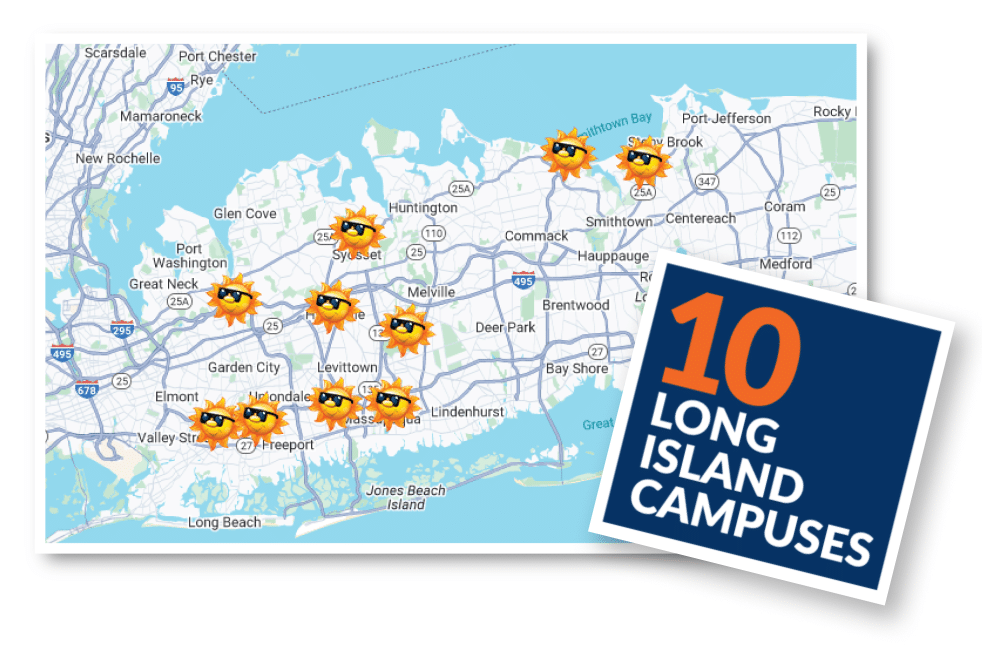 Multiple Locations on Long Island: We have 10 campuses for you to choose from. Whether it’s near your home or work, we’ve got you covered!
