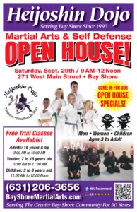 For info call 631-206-3656 or go to bayshoremartialarts.com