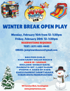 Looking for something fun to do with the kids during winter break? Jump Town USA is having open play. Please remember reservations fill fast so don’t wait, Reserve Today!