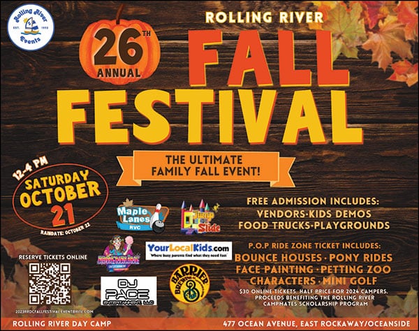 Rolling River Fall Festival For more info and tickets click here Event details:Start dateOctober 18, 2025 12:00 pmStart time12:00 pmEnd time4:00 pmLocationRolling River Day CampLocation Address477 Ocean AvenueWebsitewww.rollingriver.comGoogle Calendar iCal feed URL https://yourlocalkids.com/?rhc_action=get_icalendar_events&ID=18601 Get Feed for iCal (Google Calendar). This is for subscribing to the events in the Calendar. Add this URL to either iCal (Mac) or Google Calendar, or any other calendar that supports iCal Feed. Download ICS file Venue DetailsVenueRolling River Day CampAddress477 Ocean AvenueCityEast RockawayPostal code11518StateNYInformationPhone516-593-2267Emailcamp@rollingriver.comWebsitewww.rollingriver.comGet directionsGet directions |||:: 477 Ocean Avenue, East Rockaway, NY 11518
