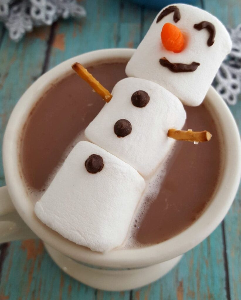 - Prepare your hot cocoa and gently lay the snowman on top, and enjoy!