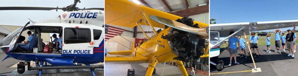 Campers have the opportunity to learn first hand about the dynamics of airplanes and flight along with the broad spectrum of careers in the aerospace industry. Campers get to fly an airplane! There is a strong education component that all campers receive. There are field trips to explore various elements that together form the aerospace industry.