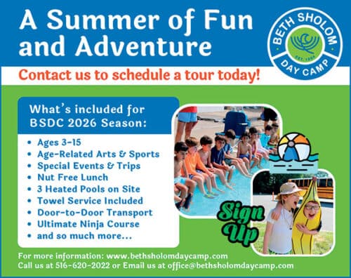Beth Sholom Day Camp, located in Roslyn Heights, NY is a Summer Camp for children 3-14 years old of all backgrounds serving Nassau & Queens. Our program allows children to try new activities, build friendships, and develop skills in a safe and nurturing environment. Campers participate in a variety of activities including daily American Red Cross swim instruction, athletics, arts and more! Our program is highlighted by exciting weekly Special Events such as Olympics and Carnival. Children may attend 4-8 weeks. Lunch, snacks and bus included.