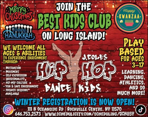 Long Island Directory J. Coles Hip Hop Dance Kids Website: https://www.schedulicity.com/scheduling/JCH85Y Phone Number: 646-753-2573 Address: 111 N Oceanside Rd, Rockville Center, NY ZIP Code: 11570 Directions to listing From: Current location Specific Address Travel Mode: Driving Public Transit Walking Cycling Send Message to listing owner Listing Title: J. Coles Hip Hop Dance Kids Your Name Your Email Message