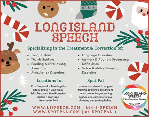 Long Island Speech, led by Janine Stiene, is the leading speech therapy provider on Long Island with 9 locations in Nassau and Suffolk County. They specialize in Myofunctional Therapy, PROMPT, Voice Disorders, Fluency, Augmentative Communications, Articulation, Feeding Therapy, Auditory Processing, Expressive/Receptive Language Disorders, and so much more. Long Island Speech participates with most major health insurance companies and offers evening and weekend hours. Call 844-5-SPEECH to schedule your first appointment, or visit LISpeech.com.