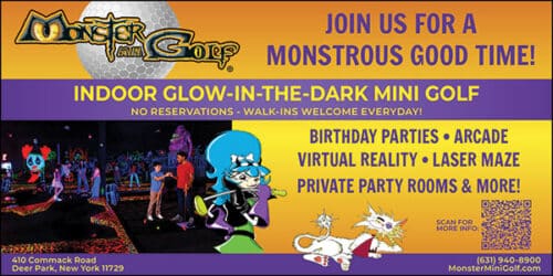 Upon entering Monster Mini Golf, all perceptions of traditional mini golf will be spirited away by the indoor, 18 hole, monster-theme, glow-in-the-dark miniature golf course! Guests are invited to experience a host of family-oriented fun activities. Whether visiting for the first time, or the one hundredth, mini golfers feel the excitement and adventure of playing mini golf amidst spooktacular monsters and custom, glow in the dark, hand painted artwork. While testing their skill on the fairways, lively music flows over the course from the unique “WEIRD Radio” station” and an interactive DJ entertains golfers with contests, awarding cool prizes for the wackiest reasons. While the course is challenging enough for adults, it is also quite playable for children. Monster Mini Golf is open year round and frightfully fun for the entire family. In addition to miniature golf and thrilling arcade and redemption games, we offer additional attractions, Laser Maze and a Virtual Reality Experience. Two very posh, private party rooms are also available and are perfect for any event. Monster Mini Golf looks forward to making it a monstrous success. Monster Mini Golf is indoors, ensuring that the event will always take place, regardless of the weather. It is a climate controlled, affordable source of family entertainment.