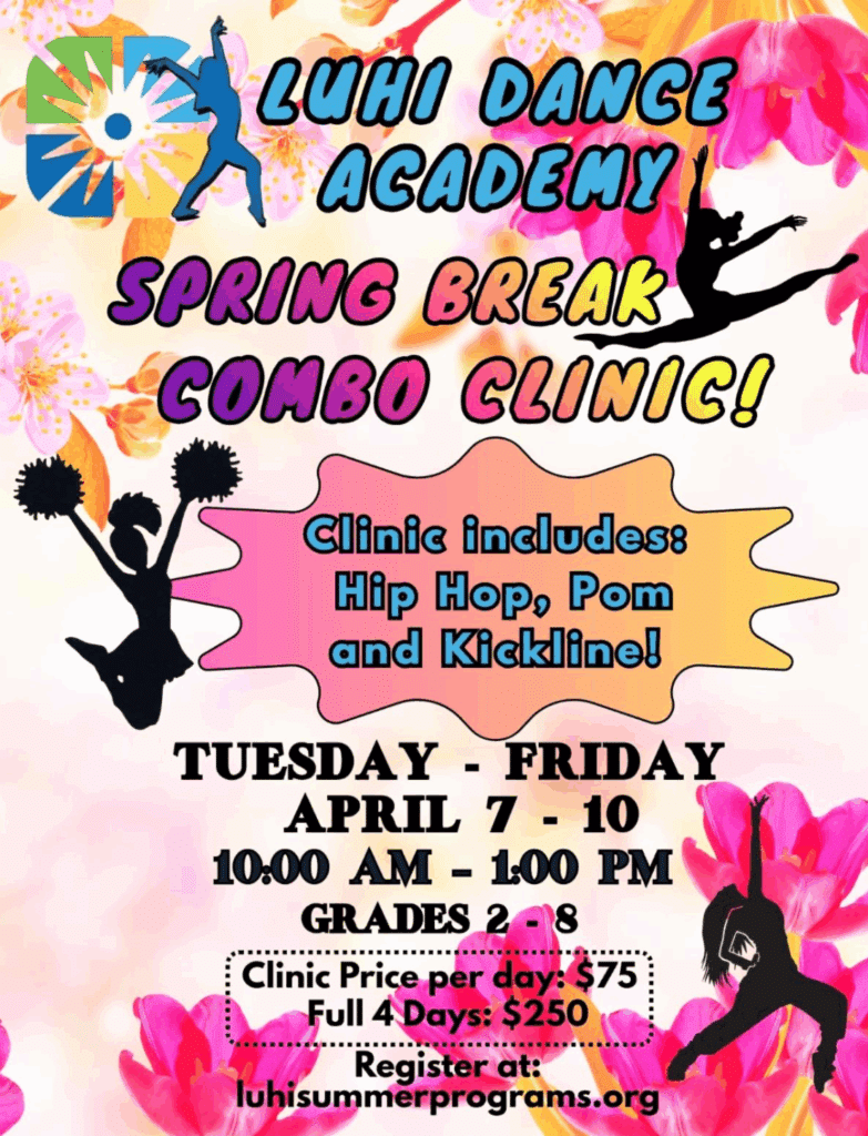LuHi Dance Academy Spring Break Combo Clinic — April 7–10 | Grades 2–8 | 10:00 AM – 1:00 PM